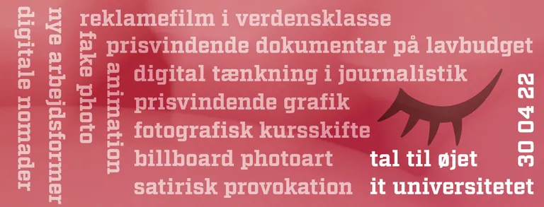 Konference om mennesker, medier og muligheder. Fordi verden forandrer sig med raketfart indenfor alle former for visuel kommunikation, er det vigtigt at have en finger på pulsen. I programmet har vi øje på trends og teknologi, der favner begrebet "visuelt".