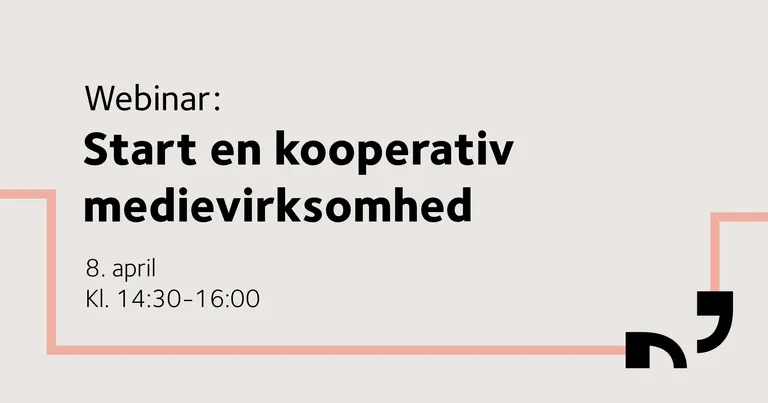 I webinaret bliver du introduceret til den kooperative virksomhedsform med særligt fokus på dens relevans i mediebranchen, og hvordan den adskiller sig fra andre organisationsformer. Blandt andet undersøger vi, hvordan man konkret kan udforme et mediekooperativ som enten et medarbejderkooperativ eller et andelsejet freelancerbureau. Herudover kan du møde et Journalistbureauet TANK og høre dem fortælle, hvorfor de har valgt at etablere sig som et kooperativ.